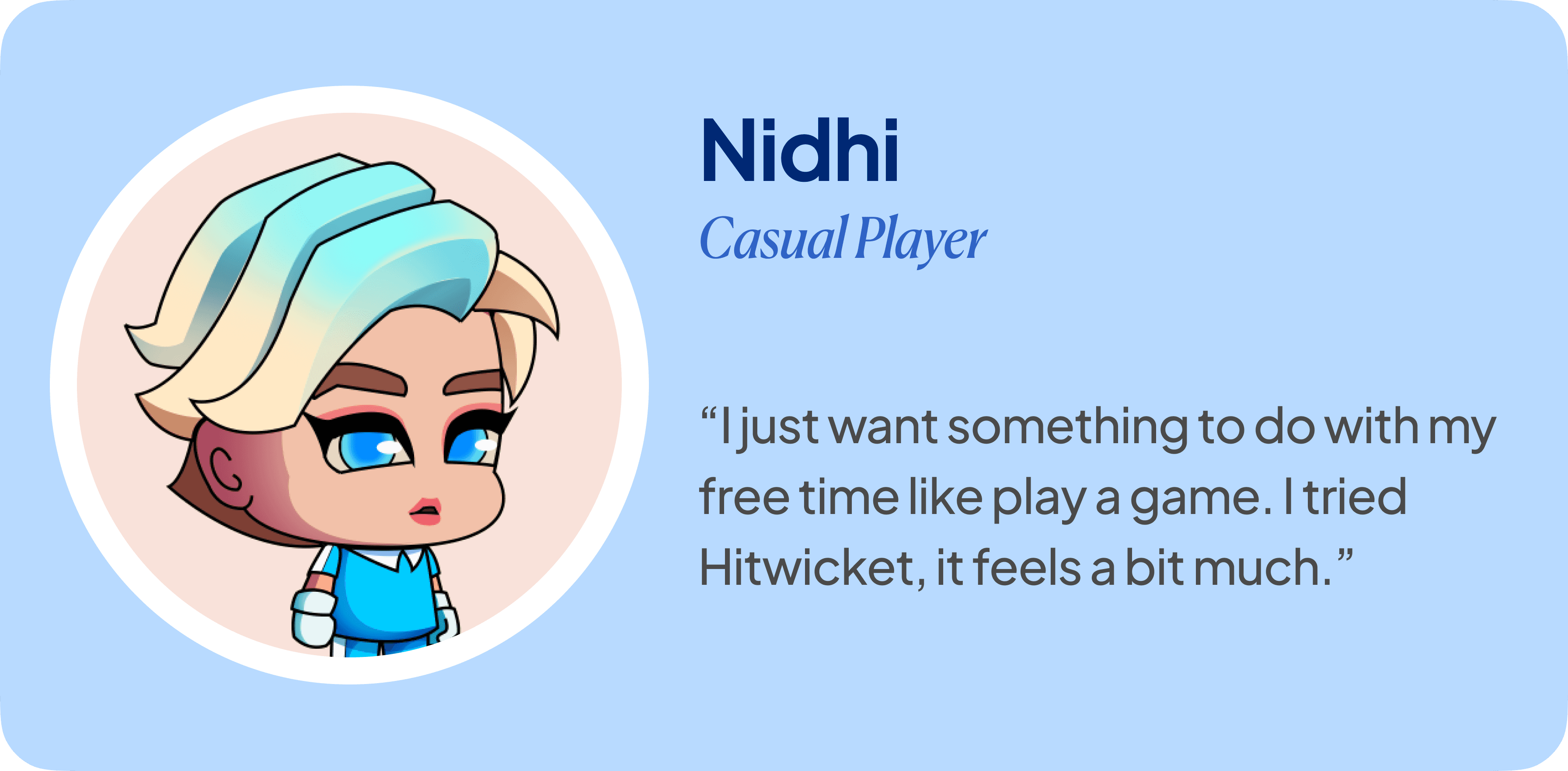 I, along with a product analyst, interviewed about 20+ new and existing users to understand why they weren't playing Hitwicket enough.