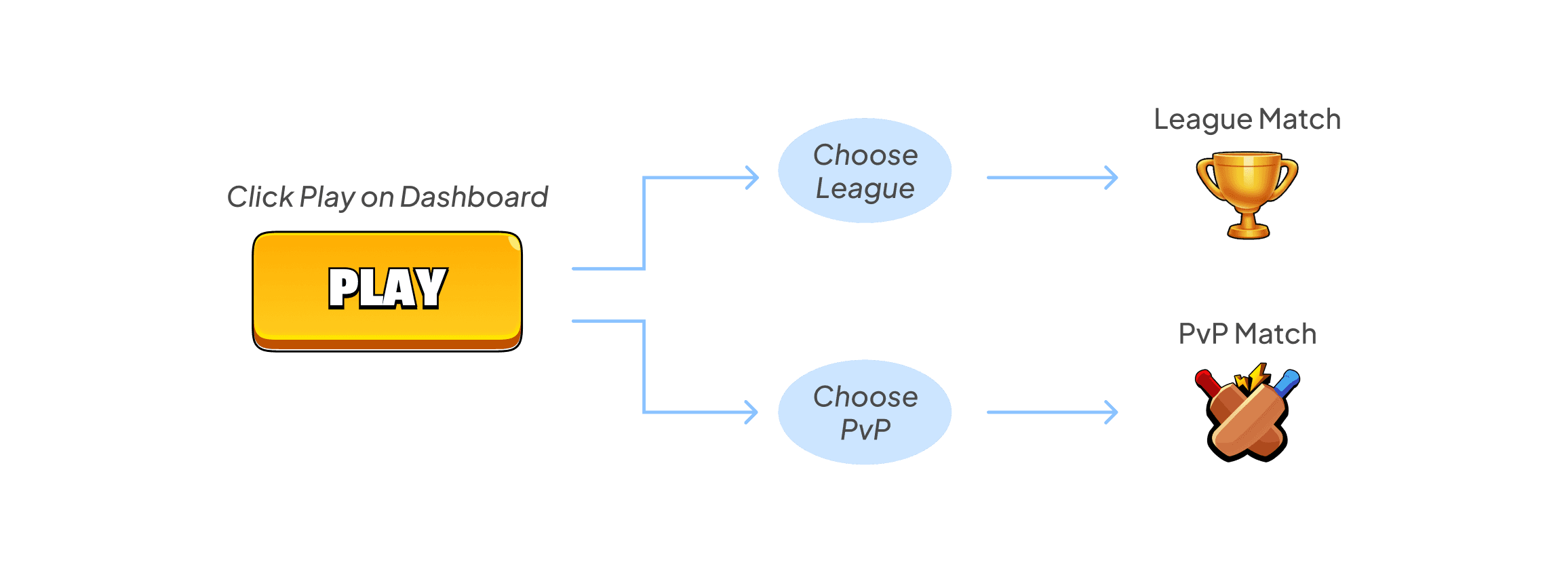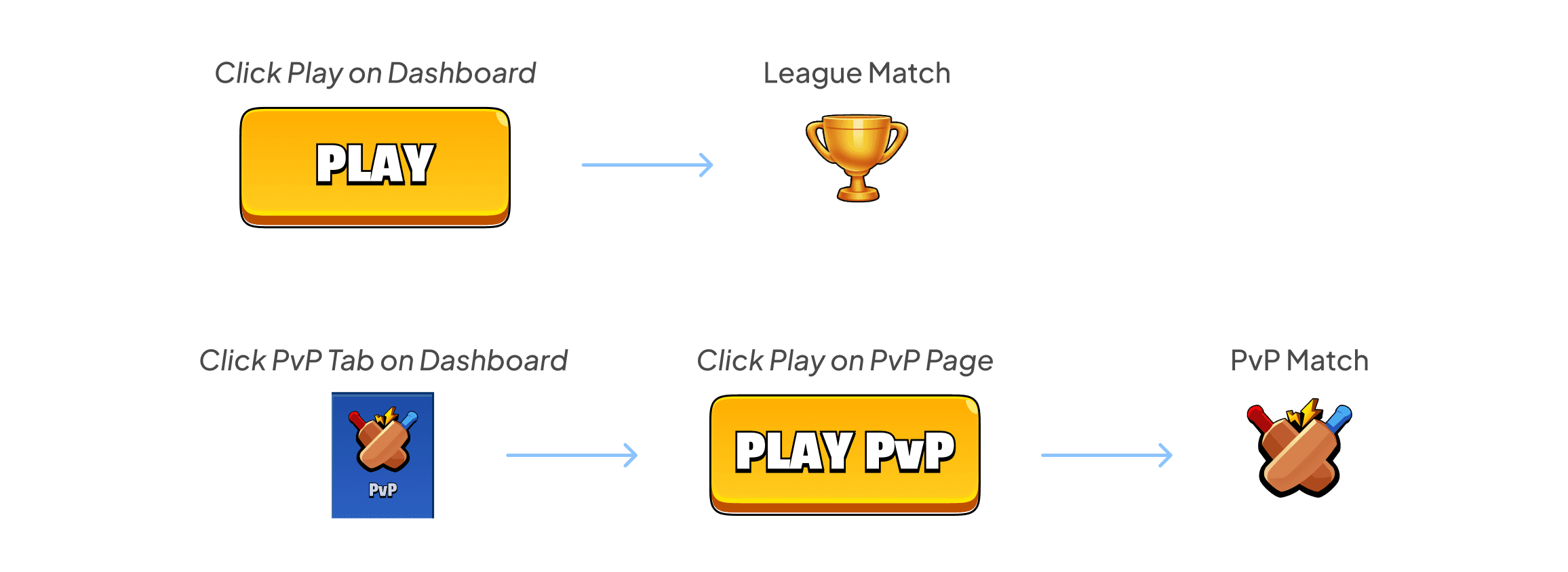 This way, players start with League, get familiar with the game, and once PvP unlocks, they're naturally prompted to try it every time they tap 'Play'